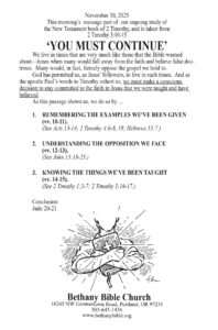 Bethany Bible Church Online Bulletin – December 14, 2025